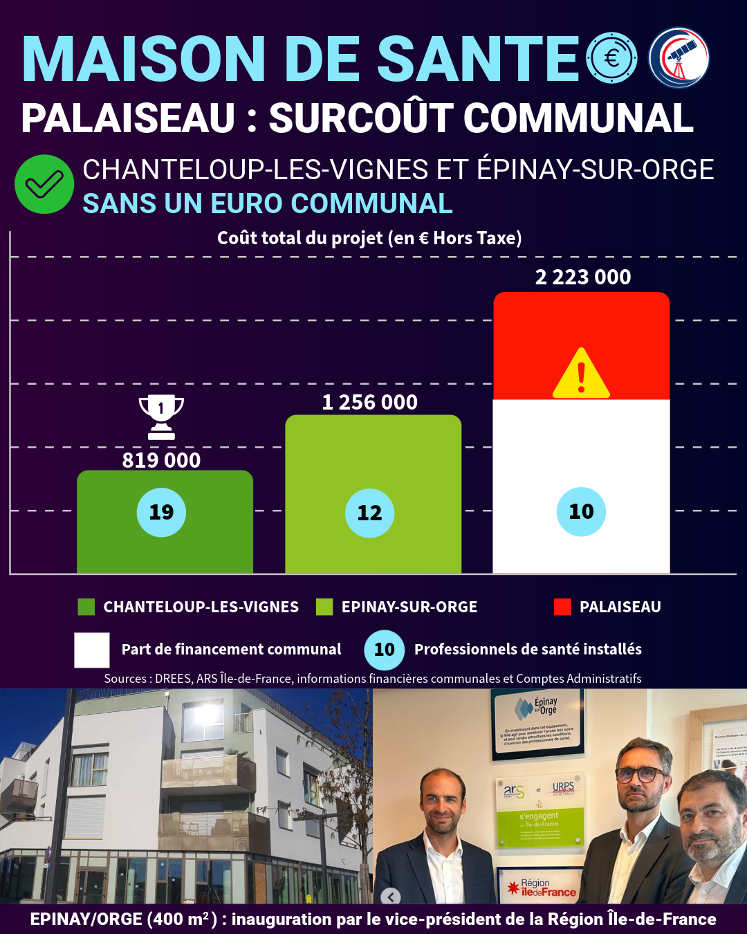 Il permet de montrer que des communes parviennent à créer une offre de soins significative avec des budgets bien plus faibles. On voit ainsi ce que des projets sobres et bien maîtrisés peuvent produire, et à quel point Palaiseau s’en écarte.